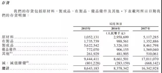 與此同時(shí),隨著小米出貨量的不斷提升,其存貨也在不斷增長(zhǎng),其中2016年由于出貨量的下降,導(dǎo)致存貨與2015年相比有所下降,但是到了2017年,其存貨金額高達(dá)163.42億元,與前兩年相比幾乎同比增長(zhǎng)100%!