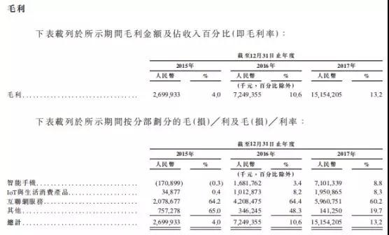 從利潤(rùn)方面來(lái)看的話,小米2015年和2017年均處于虧損狀態(tài),只有2016年凈利潤(rùn)為4.91億元!在招股書中,2015年至2017年,小米集團(tuán)分別產(chǎn)生虧損人民幣76億元、利潤(rùn)人民幣491.6百萬(wàn)元及虧損人民幣439億元。