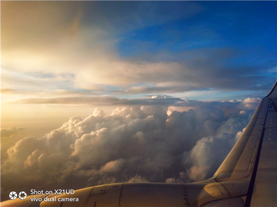 無論是在飛機上航拍,還是落地后拍攝雷克薩斯,vivo X21都展現(xiàn)了強大的逆光拍照能力。這主要歸功于AI逆光拍照,有了它,逆光拍照更具藝術(shù)效果。下圖中,夕陽霞光遍染云層,頓時有種風(fēng)云涌動的大片質(zhì)感。