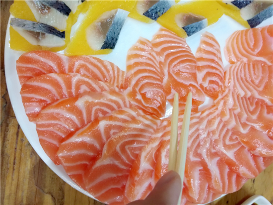 對于美食,Y75s的相機會稍微提升一下畫面飽和度,讓美食顯得更加誘人。而實際樣張也是更為優(yōu)秀,就像這三文魚,顏色令人垂涎欲滴。