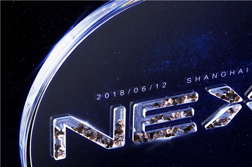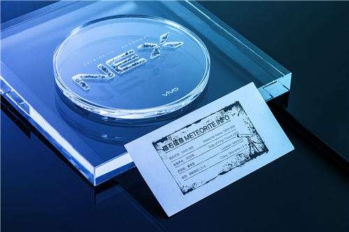 在圓形透明玻璃牌上,首先映入眼簾的是透明的“NEX”三個字母,每個字母中都包含著許多顆粒狀的隕石。根據(jù)卡片上的信息,這些隕石是于2000年在摩洛哥被發(fā)現(xiàn)的代號為NWA869的隕石。vivo此次以意想不到的天外來物為信使,也預(yù)示著即將發(fā)布的vivo NEX,承載這vivo探索未知、不斷突破的精神,也將帶來超乎想象的未來科技。