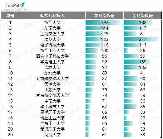 與此同時(shí),東北大學(xué)、昆明理工大學(xué)、合肥工業(yè)大學(xué)的發(fā)明授權(quán)量都有大幅增長。而清華大學(xué)的發(fā)明授權(quán)量減少近半,由上月的第一位跌至了本月的第四位;華南理工大學(xué)的發(fā)明授權(quán)量減少明顯,由上月的第三位跌至了本月的第八位。(校對(duì)/茅茅)