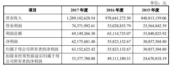 龐大的客戶基礎(chǔ)令其營收快速增長。根據(jù)數(shù)據(jù)顯示,2015年、2016年、2017年,該公司的營收分別為8.49億元、9.79億元、12.89億元,分別實(shí)現(xiàn)凈利潤0.31億元、0.59億元、0.62億元。