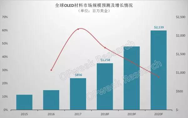 OLED材料整體市場(chǎng)規(guī)模