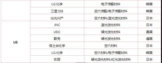 圖表5:三星及LG主要材料供應(yīng)商