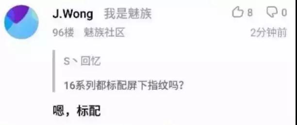 但由于正面指紋與全面屏沖突,為了與全面屏相呼應(yīng),魅族16也選擇了屏下指紋方案。根據(jù)黃章在魅族社區(qū)的留言可知,魅族16系列將會(huì)全系標(biāo)配屏下指紋技術(shù),且采用匯頂?shù)钠料轮讣y解決方案,同時(shí)具備壓感反饋功能,不僅可以提升其指紋解鎖的成功率,還會(huì)帶來(lái)震動(dòng)反饋效果。