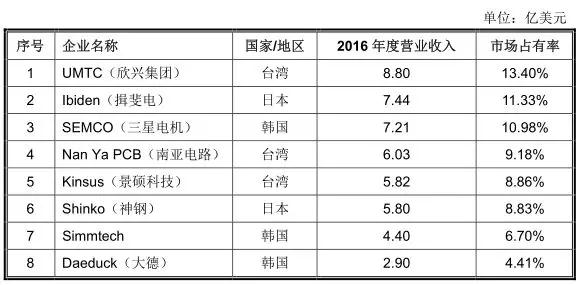 數(shù)據(jù)顯示,目前全球封裝基板行業(yè)基本由UMTC、Ibiden、SEMCO等日本、韓國和臺灣地區(qū)PCB企業(yè)所壟斷,全球前十大封裝基板廠商市場占有率高達81.98%,行業(yè)集中度較高。從這可以看出,深南電路在全球封裝載板行業(yè)所占比例只有1.08%,而另一份數(shù)據(jù)顯示,大陸企業(yè)在全球的占有率是1.23%,從這也可以看出深南電路在本土封裝載板市場的影響力!據(jù)深南電路表示:“公司制造的硅麥克風微機電系統(tǒng)封裝基板產(chǎn)品大量應(yīng)用于蘋果和三星等智能手機中,全球市場占有率超過30%。”