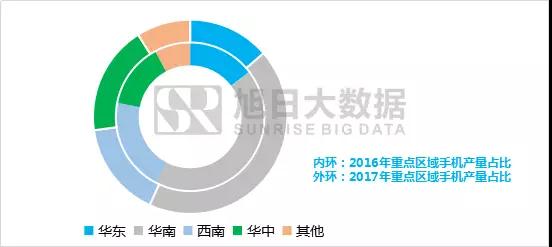 圖表5 2016-2017年全國重點區(qū)域手機(jī)產(chǎn)量占比