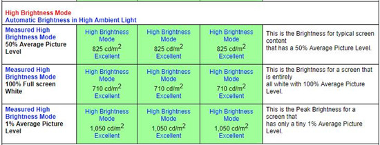 -創(chuàng)紀(jì)錄的峰值亮度,屏幕平均圖像水平APL的變化幾乎不影響峰值亮度。