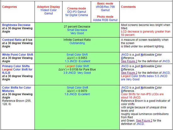 DisplayMate表示,無論那種色域模式下,隨著APL變化色差都很小,最大變化只有0.7 JNCD,最大色差也就只有1.2到1.5 JNCD之間,APL的白點(diǎn)偏移僅為0.2 JNCD,可以說是非常出色了。