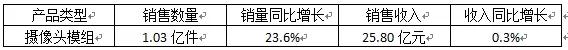 攝像頭模組平均銷售單價(jià)為25.1元較同期下跌約18.8%