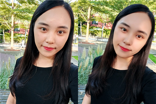 ▲左為正常拍攝,右為開啟美顏效果