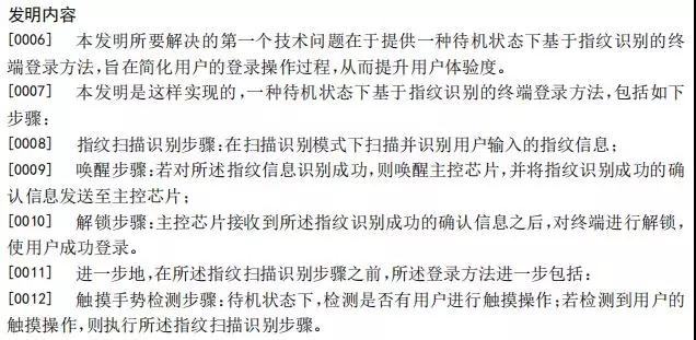專利一:基于指紋識(shí)別的終端及其待機(jī)狀態(tài)下的登錄方法、系統(tǒng)