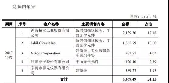 此外值得一提的是,永新光學(xué)已成功上市,在客戶端,永新光學(xué)報告期內(nèi)前五大客戶為Sanmina Corporation、Nikon Corporation、鴻海精密工業(yè)股份有限公司、Leica Camera AG、Jabil Circuit Inc.、United Scope LLC、Optika S.R.L.