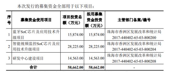 此次,杰理科技擬發(fā)行不低于4001萬股,發(fā)行后總股份不低于4億股,而募集資金5.87億元將用于藍(lán)牙SoC芯片及應(yīng)用技術(shù)升級項目、智能視頻監(jiān)控SoC芯片及應(yīng)用技術(shù)升級項目及研發(fā)中心建設(shè)項目。