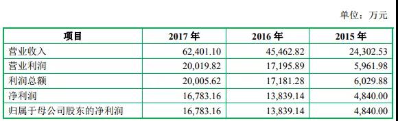從其營收角度來看,2015年度、2016年度和2017年其營收分別為1.10億元、3.85億元、5.91億元,相對應(yīng)的凈利潤則分別為1125.22萬元、8415.94萬元、1.69億元,2015年度、2016年度的收入增速分別為153.85%、247.25%!