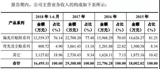 主營業(yè)務(wù)為精密光電薄膜元器件的研發(fā)、生產(chǎn)和銷售,精密光電薄膜元器件包括紅外截止濾光片、生物識別濾光片等,報告期內(nèi)公司的主要產(chǎn)品為紅外截止濾光片,主要應(yīng)用于可拍照攝像頭、電腦內(nèi)置攝像頭、汽車攝像頭和安防攝像頭等數(shù)碼成像領(lǐng)域。