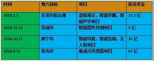 2018年11月22日,歌爾股份還發(fā)布投資公告:為加快公司產(chǎn)業(yè)布局,公司同榮成市人民政府于2018年11月21日在榮成市簽署《項目合作協(xié)議》,擬在榮成市小遲家村原址地塊,共同投資建設(shè)智能器件封測項目。