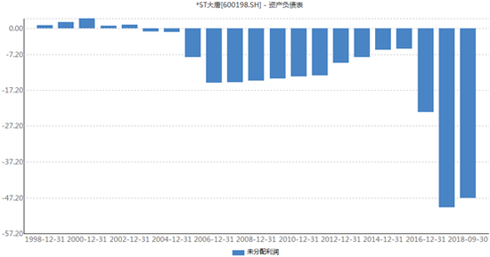 從最近一期財報的未分配利潤數(shù)字也可以看的很清楚,自上市第6年至今,每年未分配利潤一直是負值,也就是說,大唐電信上市第6年起的15年時間一直處于累計虧損狀態(tài)。