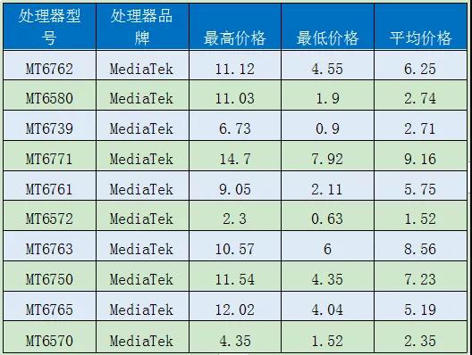 2018年11月聯(lián)發(fā)科TOP10處理器芯片價格表