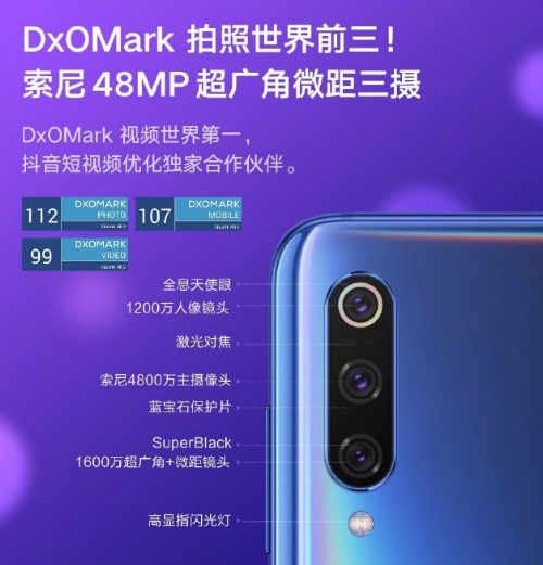 過去一年,小米手機的拍照技術(shù)突飛猛進,去年小米MIX 2S參加權(quán)威網(wǎng)站DxOMark拍照評分就取得了與iPhone X相同的成績,此次發(fā)布的小米9相機技術(shù)又有了新的突破。小米9采用索尼4800萬超廣角微距AI三攝,三枚鏡頭分別由4800萬像素索尼超清主攝像頭、1200萬像素2倍光學變焦人像鏡頭和1600萬像素超廣角+微距鏡頭組成,前置2000萬美顏相機,小米9支持全新AI廣角場景防畸變拍照、激光對焦和4cm微距拍攝,進一步優(yōu)化了手持超級夜景功能,并為拍月亮的愛好者提供了“月亮模式”。此次DxOMark后置相機拍照評分中,小米9超越蘋果、三星所有旗艦機型,成績位列世界前3,視頻拍攝評測排名位列全球第1。業(yè)內(nèi)人士指出,拍攝、分享短視頻已經(jīng)成了年輕人的日常習慣,小米9視頻拍攝評測排名全球第一,這項功能肯定會受到用戶的追捧。