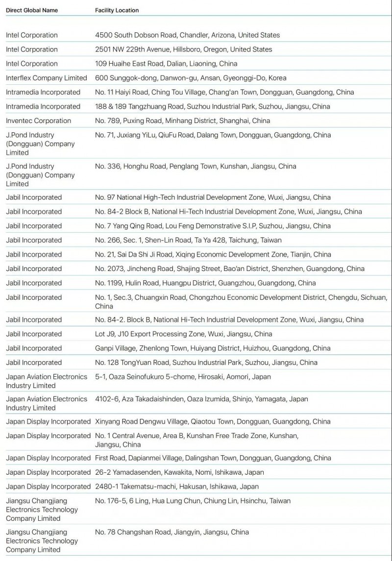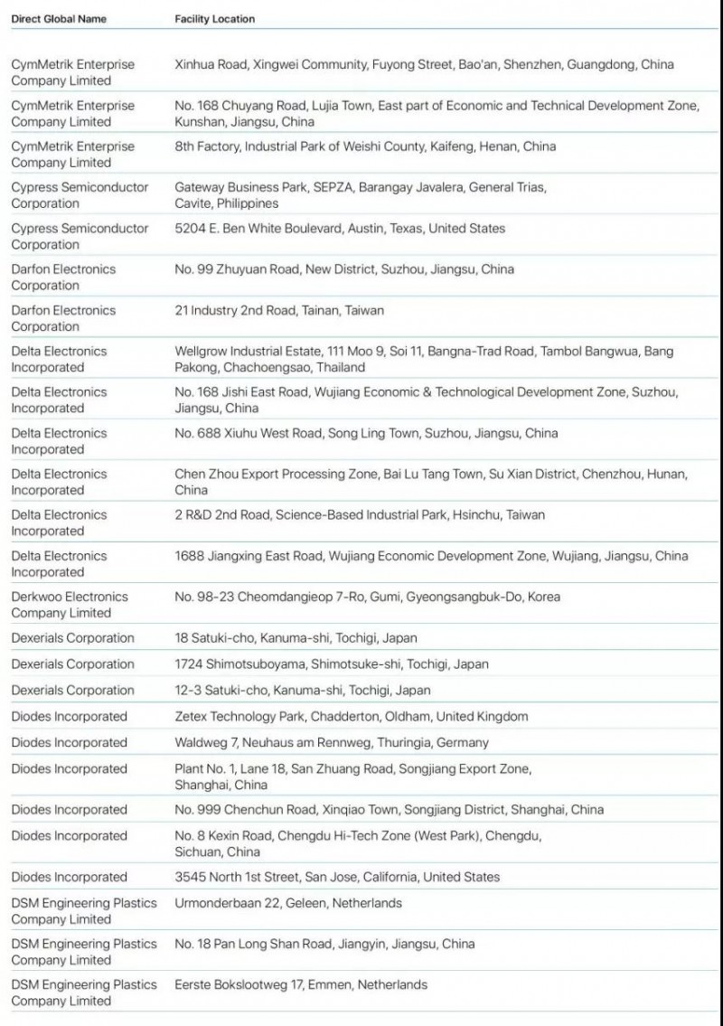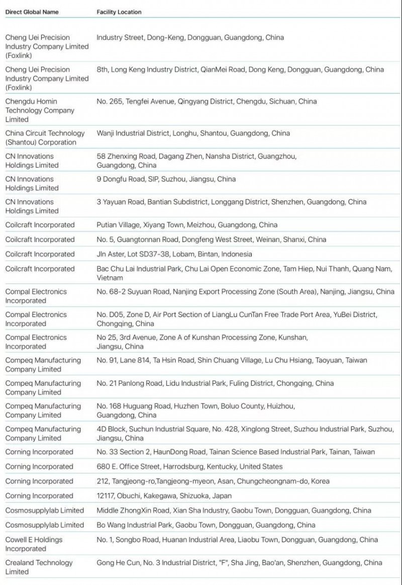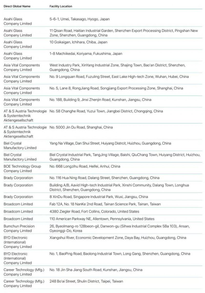 Bumchun Precision Company Limited:韓國廠商,此前為蘋果提供音響模塊及其他組件。原部分年份沒有出現(xiàn)在名單中。