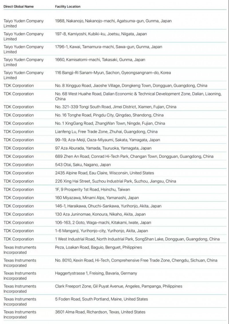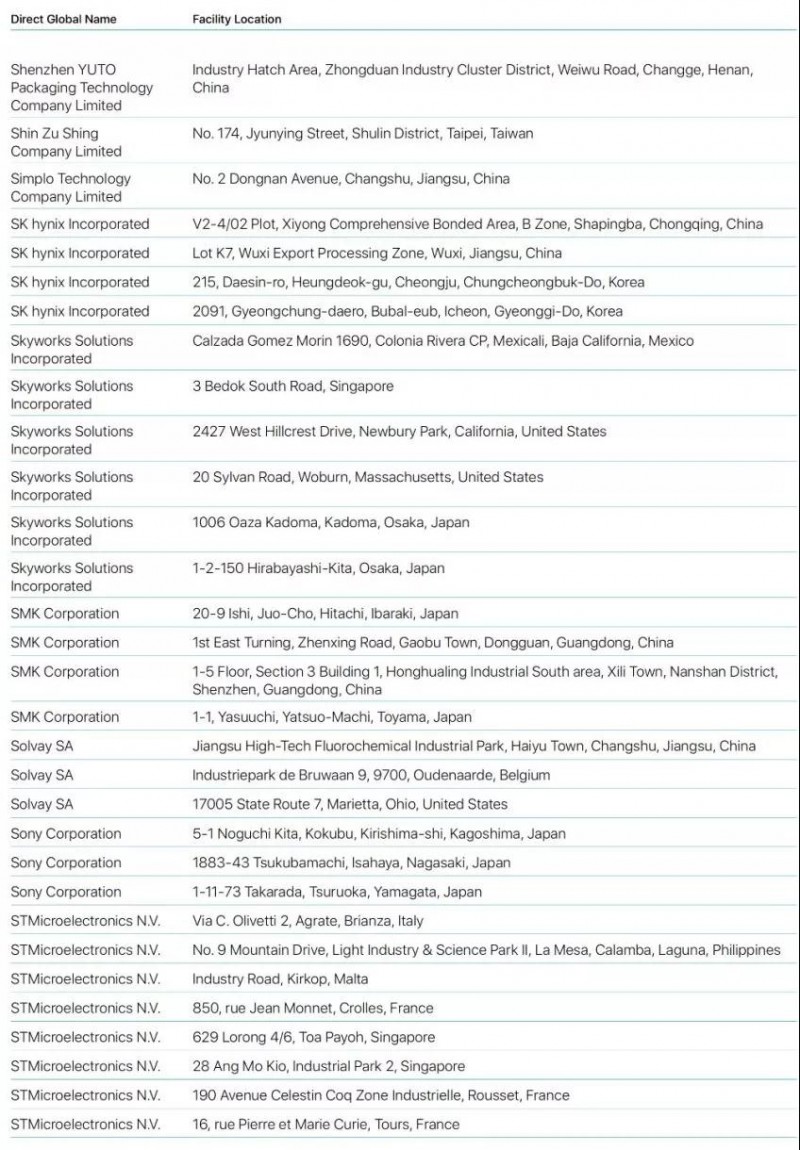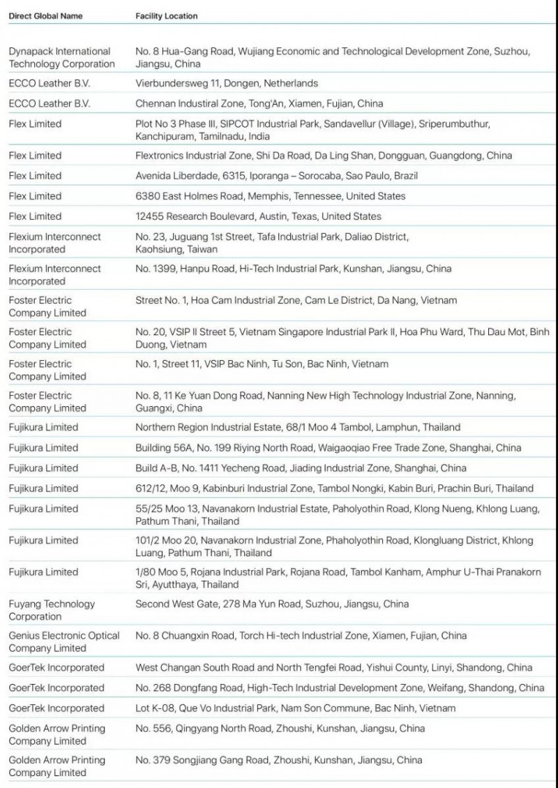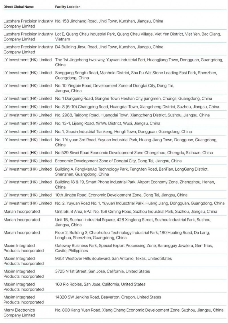 Bumchun Precision Company Limited:韓國廠商,此前為蘋果提供音響模塊及其他組件。原部分年份沒有出現(xiàn)在名單中。
