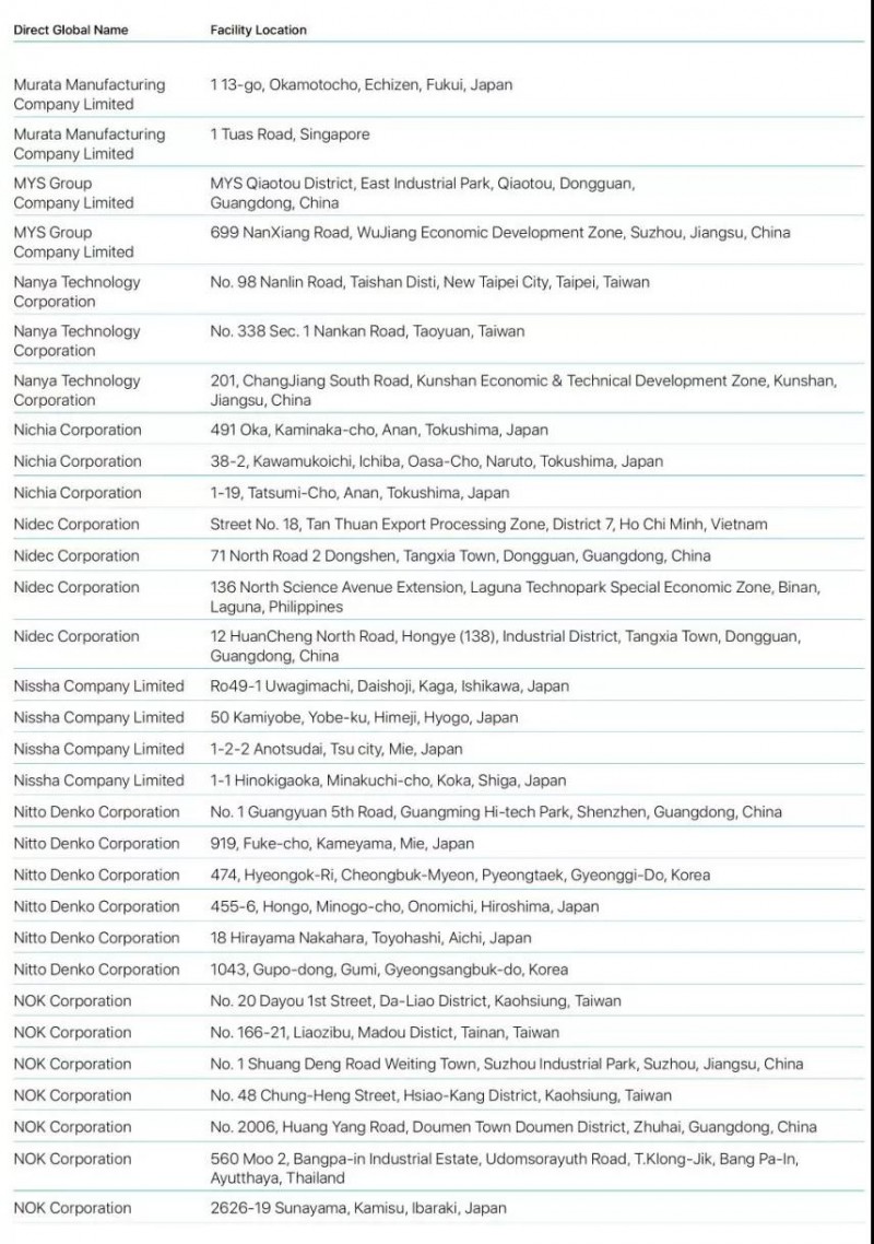 Brady Corporation(貝迪):此前貝迪為蘋果提供精密模切方案,可用于手機(jī)解決方案和其他消費(fèi)類電子解決方案。但隨后被寶德集團(tuán)收購,所以在最新的這份名單中,并未出現(xiàn)貝迪的名字,無法確定貝迪是否還在為蘋果供應(yīng)產(chǎn)品!