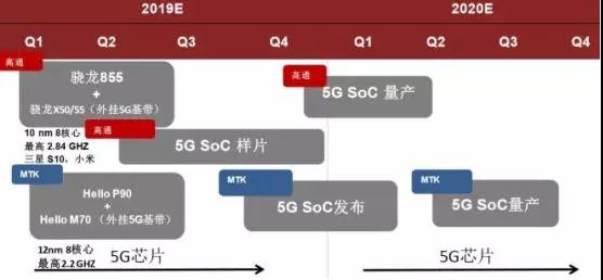 而從高通、聯(lián)發(fā)科的產(chǎn)品規(guī)劃路線圖中,可以看出耗電和體積方面有較大優(yōu)勢(shì)的5G SoC要到今年第四季以后才能會(huì)量產(chǎn)。再加上世界各國5G網(wǎng)路建置工作才剛起步,因此中金公司認(rèn)為5G帶起的換機(jī)潮最快要到2020年上半年才能顯現(xiàn),目前投資人不應(yīng)太過樂觀。