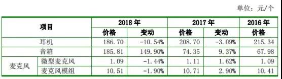 此外,其產(chǎn)品價(jià)格近些年的波動(dòng)比較大,尤其是主營(yíng)業(yè)務(wù)耳機(jī),已經(jīng)從2016年的215.34元/個(gè)下降到2018年的186.70元/個(gè)!據(jù)其表示,公司的耳機(jī)產(chǎn)品均價(jià)小幅下降,2017年平均價(jià)格下降3.09%,2018年平均價(jià)格下降10.54%,主要系銷售價(jià)格較低的有線頭戴式耳機(jī)銷售占比上升等影響。2018年,公司音箱銷售均價(jià)上升149.90%,主要系當(dāng)期銷售價(jià)格較高的智能音箱和電競(jìng)游戲音箱銷售量較上年大幅增加。
