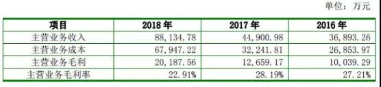從過(guò)去三年的營(yíng)收來(lái)看,其2016-2018年?duì)I收分別為3.79億元、4.66億元、9.05億元,相對(duì)應(yīng)的凈利潤(rùn)分別為3182萬(wàn)元、3257萬(wàn)元、7261萬(wàn)元!