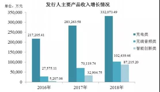 報告期內(nèi),充電類、無線音頻類以及智能創(chuàng)新類產(chǎn)品為公司主要產(chǎn)品類型,2016年度、2017年度、2018年度占主營業(yè)務(wù)收入的比重分別為99.73%、98.97%和99.74%。其中,充電類產(chǎn)品是公司的主要產(chǎn)品類型,為收入及業(yè)績的重要來源。報告期內(nèi),公司持續(xù)加大研發(fā)投入,無線音頻類和智能創(chuàng)新類產(chǎn)品作為新產(chǎn)品系列,占主營業(yè)務(wù)收入比重由2016年的13.08%增長至2018年的36.26%,呈現(xiàn)大幅增長的趨勢,成為公司重要的業(yè)績增長源泉。
