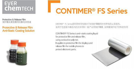 CONTIMER®FS Series是一種利用導電聚合物的環(huán)保型保護薄膜水性帶電防止涂層劑。
