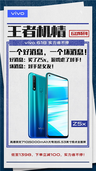 而作為vivo最新推出的重磅機(jī)型,性能實(shí)力派Z5x近日也可謂賺足了眼球。Z5x在斬獲各大主流電商平臺(tái)多項(xiàng)銷冠同時(shí),其5000mAh超強(qiáng)電池續(xù)航能力以及出色的性能,受到眾多消費(fèi)者的喜愛和歡迎?;顒?dòng)期間,Z5x低至1398元,下單更能立減100元,實(shí)力詮釋省不停的優(yōu)惠狂歡。