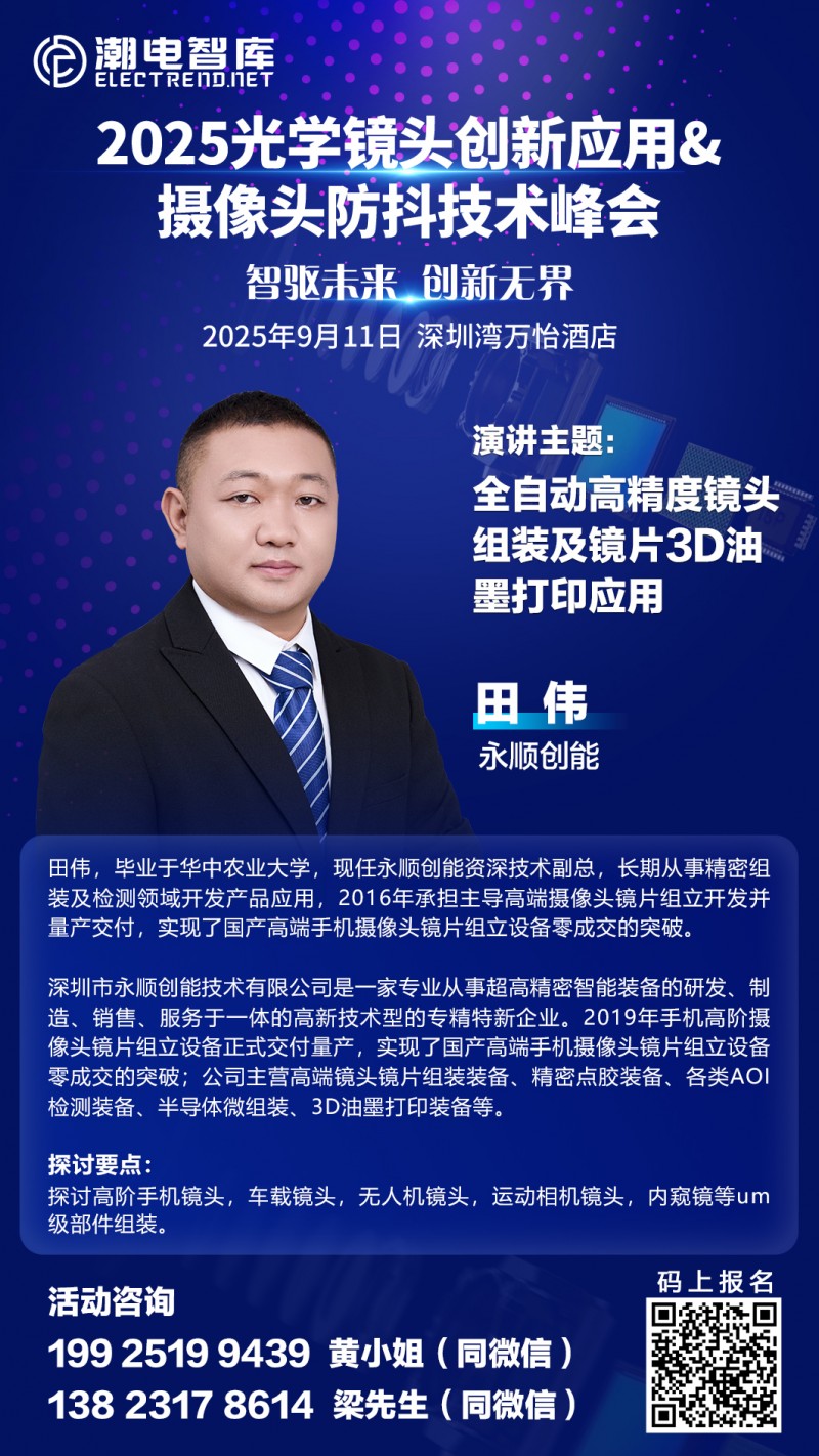 田偉,畢業(yè)于華中農(nóng)業(yè)大學(xué),現(xiàn)任永順創(chuàng)能資深技術(shù)副總,長(zhǎng)期從事精密組裝及檢測(cè)領(lǐng)域開發(fā)產(chǎn)品應(yīng)用,2016年承擔(dān)主導(dǎo)高端攝像頭鏡片組立開發(fā)并量產(chǎn)交付,實(shí)現(xiàn)了國(guó)產(chǎn)高端手機(jī)攝像頭鏡片組立設(shè)備零成交的突破。