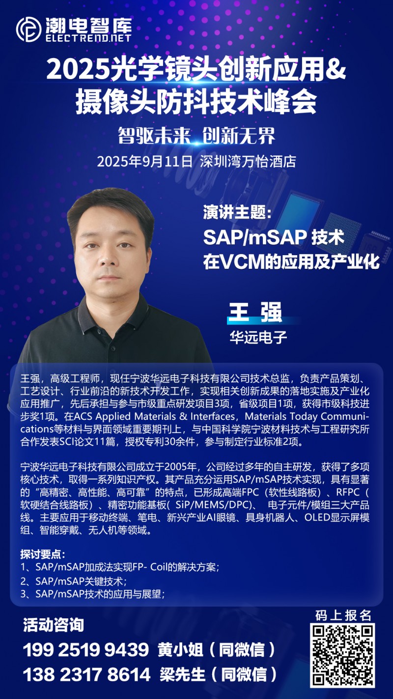寧波華遠(yuǎn)電子科技有限公司成立于2005年,位于浙江省余姚市,公司經(jīng)過(guò)多年的自主研發(fā),獲得了多項(xiàng)核心技術(shù),取得一系列知識(shí)產(chǎn)權(quán)。其產(chǎn)品充分運(yùn)用SAP/mSAP技術(shù)實(shí)現(xiàn),具有顯著的“高精密、高性能、高可靠”的特點(diǎn),已形成高端FPC(軟性線路板)、RFPC(軟硬結(jié)合線路板)、精密功能基板(SiP/MEMS/DPC)、 電子元件/模組三大產(chǎn)品線。主要應(yīng)用于移動(dòng)終端、筆電、新興產(chǎn)業(yè)AI眼鏡、具身機(jī)器人、OLED顯示屏模組、智能穿戴、無(wú)人機(jī)等領(lǐng)域。