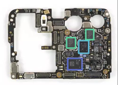 為了更深入的了解,我們剝開防護(hù)罩,尋找一些芯片:其中包括海力士的LPDDR 44X存儲芯片,美光的128GB閃存,華為麒麟980,海思HI6363 GFCV100射頻收發(fā)器,用于WCDMA/LTE的SkyWorks 78191-11前端模塊以及QORVO 77031前端模塊。