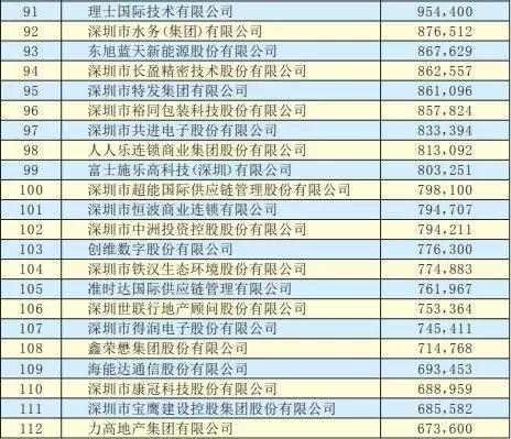 深圳500強(qiáng)企業(yè)名單出爐