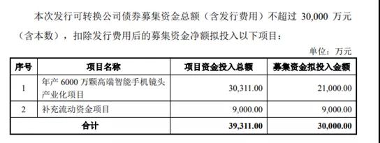 擬發(fā)可轉(zhuǎn)債募資3億元 用于手機(jī)鏡頭業(yè)務(wù)及補(bǔ)充流動(dòng)資金