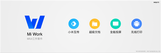 MIUI11以效率革新為出發(fā)點(diǎn),帶來(lái)出全新的MI Work功能套件,包括投屏、互傳、文件管理和打印等,與5G聯(lián)動(dòng)打造強(qiáng)有力的移動(dòng)辦公平臺(tái)。