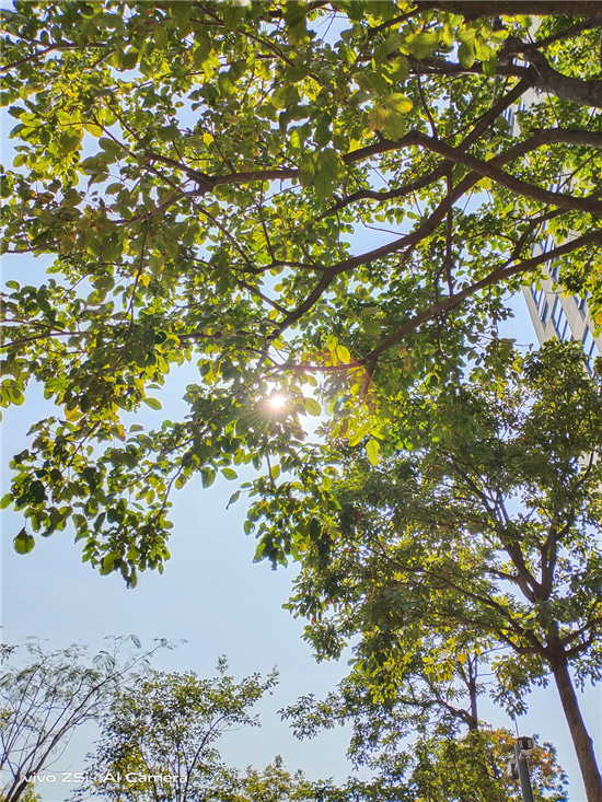 逆光很唯美,但卻難倒很多人,前后景不能同時正常曝光是很多人遇到的難題。vivo Z5i加入的超級逆光算法,動態(tài)范圍高達12.3EV,在智能選幀技術(shù)的配合下,在逆光場景中能夠做到高光不過曝,暗光不欠曝。就像下面這張照片,在保持背景光線正常曝光的同時,前面樹葉的細節(jié)也很好地得到保留,不會出現(xiàn)黑乎乎的一片。