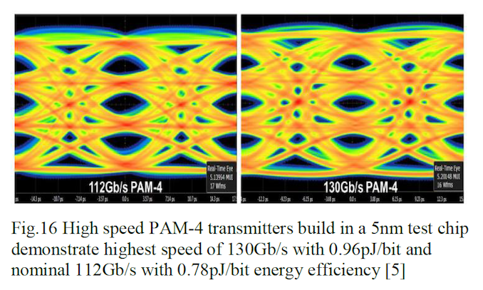 對于未來的芯片來說,支持多種通信技術(shù),也是一項重要的能力。因此在測試芯片中,TSMC還介紹了高速PAM-4收發(fā)器。