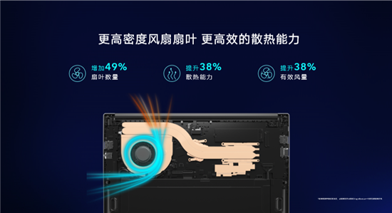 出色的性能離不開(kāi)好的散熱,榮耀MagicBook 14&15 Intel版搭載榮耀鯊魚(yú)鰭2.0散熱系統(tǒng),通過(guò)增加風(fēng)扇扇葉數(shù)量、優(yōu)化進(jìn)出風(fēng)的流向以及機(jī)身內(nèi)部的散熱結(jié)構(gòu),使得整機(jī)散熱能力較上一代提升38%,即便是長(zhǎng)時(shí)間的高性能輸出,都可以保持澎湃動(dòng)力。