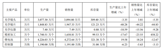 不過從產(chǎn)銷情況上看,2019年鳳凰光學的光學鏡頭生產(chǎn)量較上年卻有所下滑,而庫存較上年有所減少。