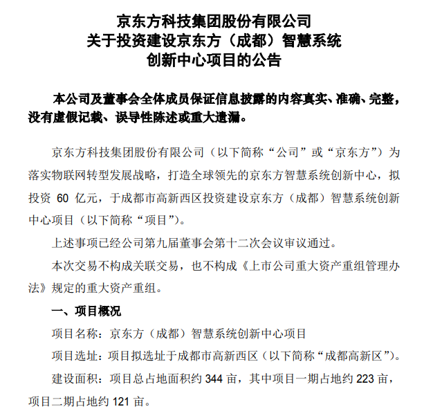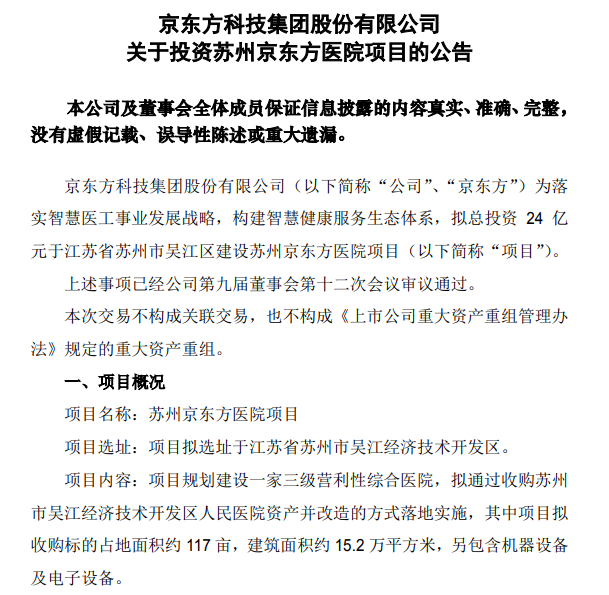 京東方A最新公告,砸百億布局智慧系統(tǒng)創(chuàng)新中心和改造醫(yī)院