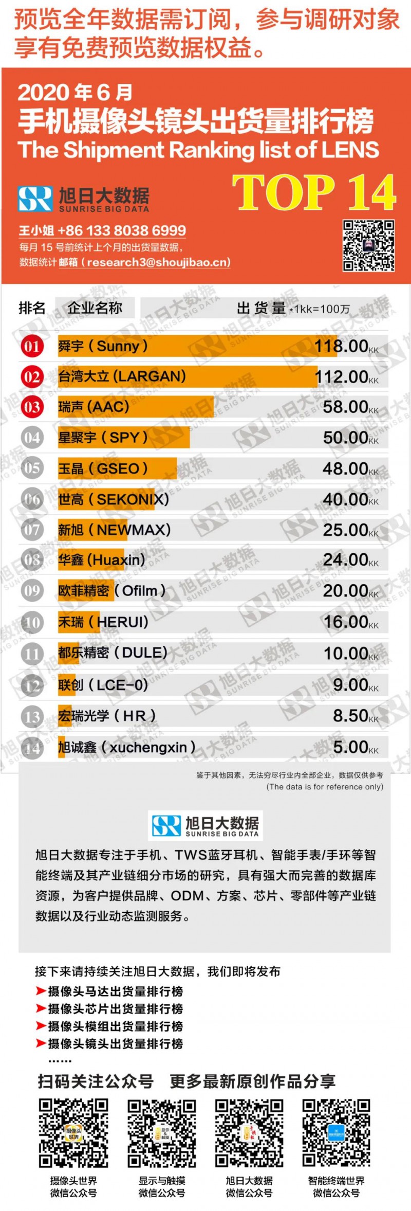 2025年手機鏡頭TOP10統(tǒng)計及預測,明年保底46億顆?
