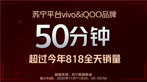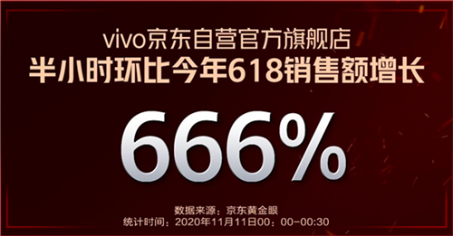 據(jù)相關數(shù)據(jù)顯示,vivo天貓官方旗艦店開售僅2分鐘,銷售額就超過今年618全天;vivo京東官方自營旗艦店,前半小時環(huán)比今年618銷售額增長666%;蘇寧平臺,vivo iQOO品牌50分鐘就超過今年818全天銷量。
