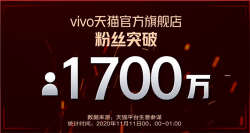 用戶方面,vivo iQOO此次雙十一大型促銷用實力增粉:vivo天貓官方旗艦店粉絲突破1700萬;vivo手機蘇寧自營旗艦店會員數(shù)環(huán)比10月增長120%;vivo官網(wǎng)累計訪問用戶量超2億人。