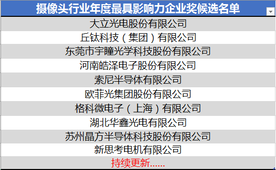 2020年攝像頭行業(yè)最具影響力企業(yè)獎(jiǎng)候選名單公布