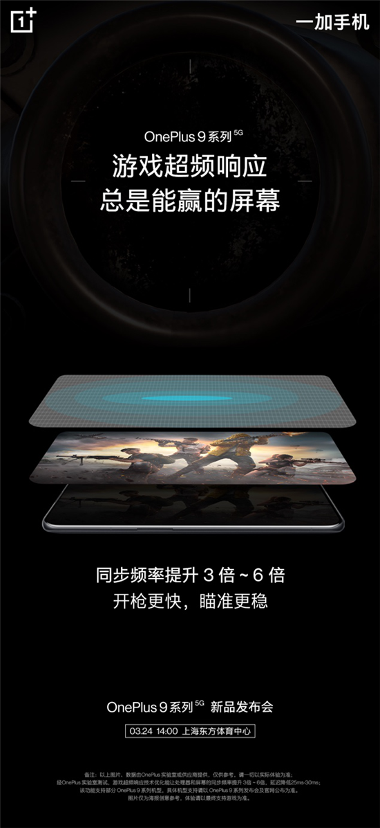 一直以來(lái),一加不斷提升手機(jī)屏幕顯示能力,持續(xù)創(chuàng)新帶給用戶更加全面優(yōu)秀的屏幕體驗(yàn)。此次一加9 Pro采用了下一代屏幕材料LTPO,通過(guò)對(duì)屏幕的不斷調(diào)試,實(shí)現(xiàn)了1Hz-120Hz刷新率的動(dòng)態(tài)調(diào)節(jié),這是業(yè)內(nèi)目前最大的刷新率調(diào)節(jié)范圍。應(yīng)用這項(xiàng)技術(shù),屏幕可以根據(jù)實(shí)時(shí)內(nèi)容適配對(duì)應(yīng)幀率,滿足高刷的同時(shí)還能降低屏幕的功耗,官方測(cè)試最高可以省電50%。除了自由高幀,一加9 Pro的屏幕還實(shí)現(xiàn)了另一項(xiàng)技術(shù)突破,為追求極致游戲體驗(yàn)的用戶打造了革命性自研游戲顯示優(yōu)化技術(shù)——游戲超頻響應(yīng),通過(guò)將屏幕和處理器的同步頻率提升3到6倍,顯著降低了屏幕響應(yīng)時(shí)間,在射擊競(jìng)技游戲上能實(shí)現(xiàn)開(kāi)槍更快、瞄準(zhǔn)更穩(wěn)的“開(kāi)掛”體驗(yàn)。